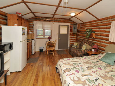 An open concept cottage suitable for one or two people with a bed. Please contact us to obtain a quote.