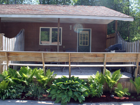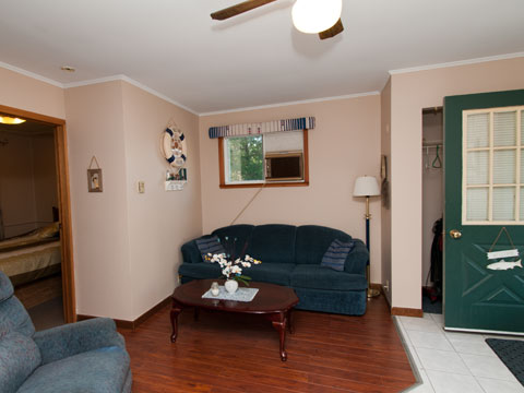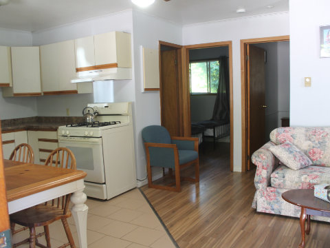 A two bedroom cottage suitable for up to four people with a pullout couch (sleeps two people). Accessible with 2 stairs and extra ramp for roll chairs.