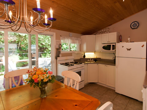 A three bedroom cottage suitable for up to six people with a pullout couch (sleeps two people). Each interior has been completely renovated and redecorated, and fitted with a gas fireplace. So comfy, it is your home away from home!